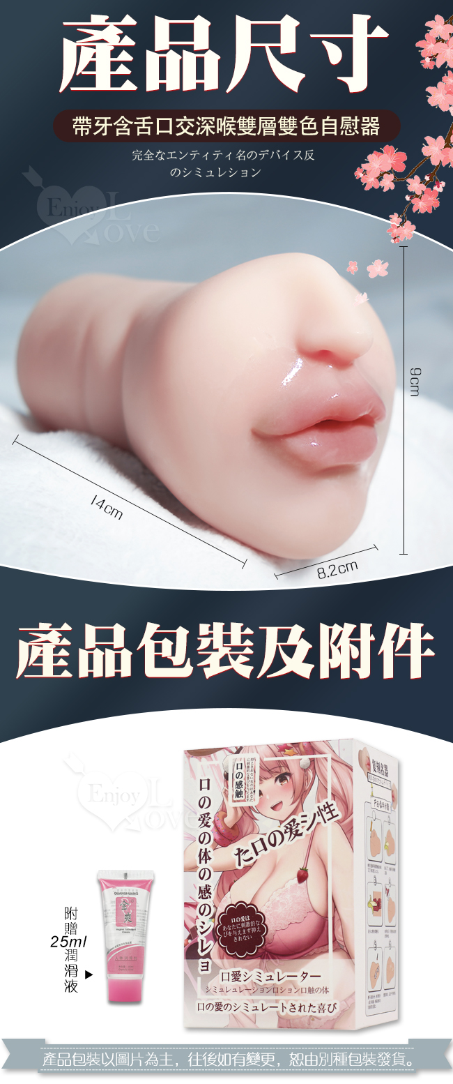 真實の復刻 ‧ 超逼真帶牙含舌口交深喉雙層雙色自慰器 附25ml潤滑液