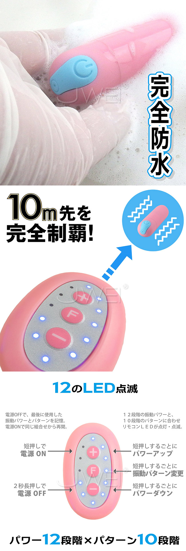 | 日本原裝進口SSI. 遠隔ピンクローターType-R 12x10段變頻遠端操控遙控跳蛋-粉色