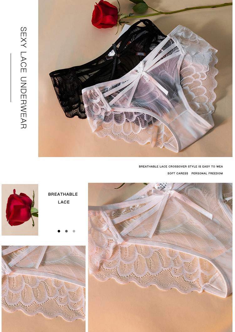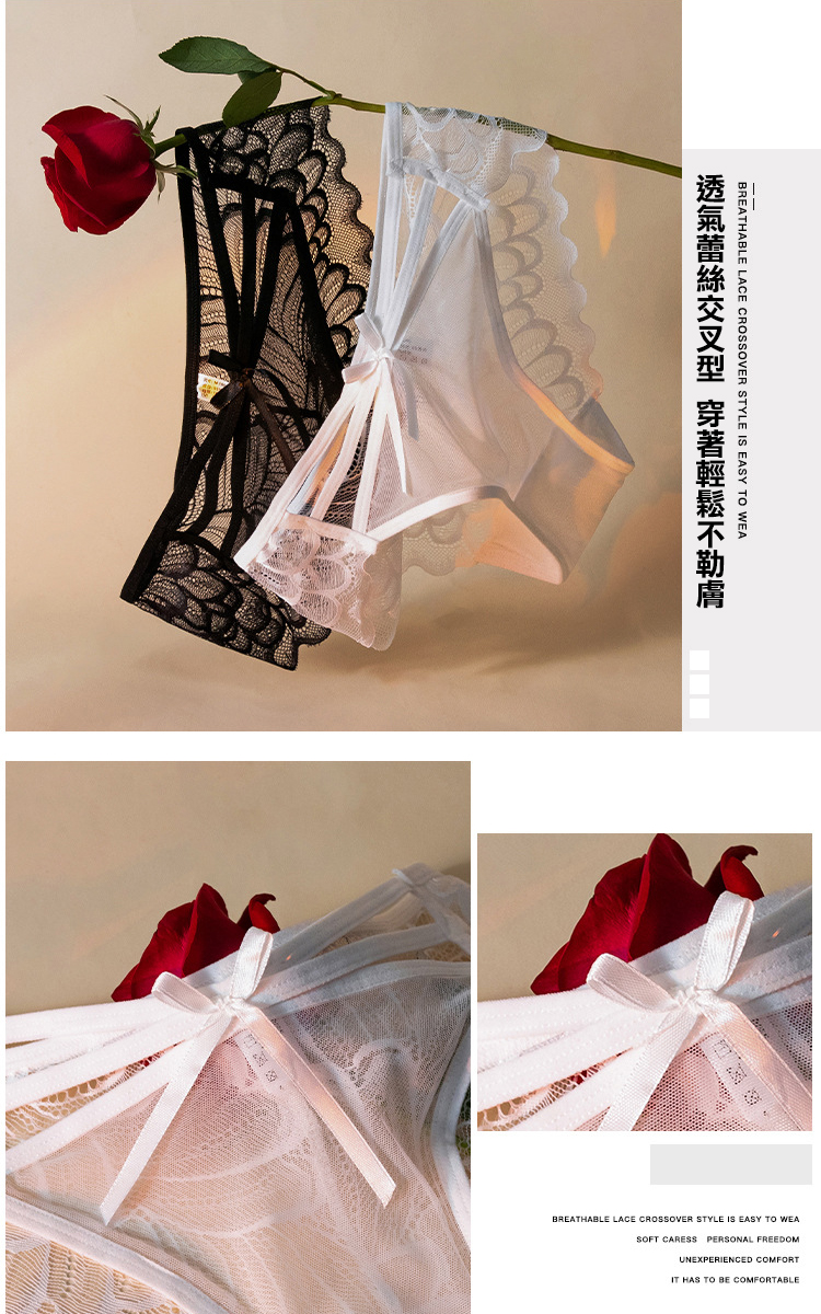性感屁股蛋蕾絲內褲【M】性感半透網紗內褲 後背鏤空細帶蝴蝶三角褲