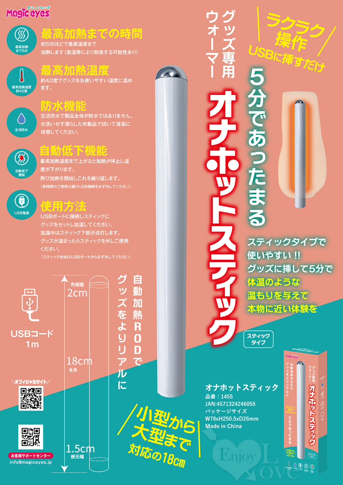 ►您現在的位置:首頁>日本Magic eyes.オナホットスティックOna 42度全自動溫控USB加熱棒﹝自慰器飛機杯專用﹞ 加溫棒