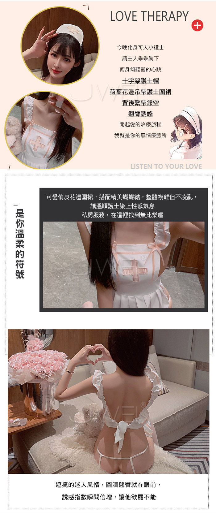 ►您現在的位置:首頁>誘慾診療.荷葉花邊吊帶圍裙綁帶美背私房護士誘惑套裝【髪箍+圍裙+T褲】