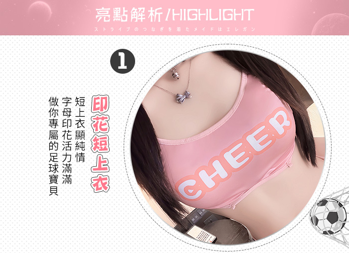 啦啦隊足球寶貝套裝|後背鏤空印花短上衣 × 撞色短裙 運動風三件組