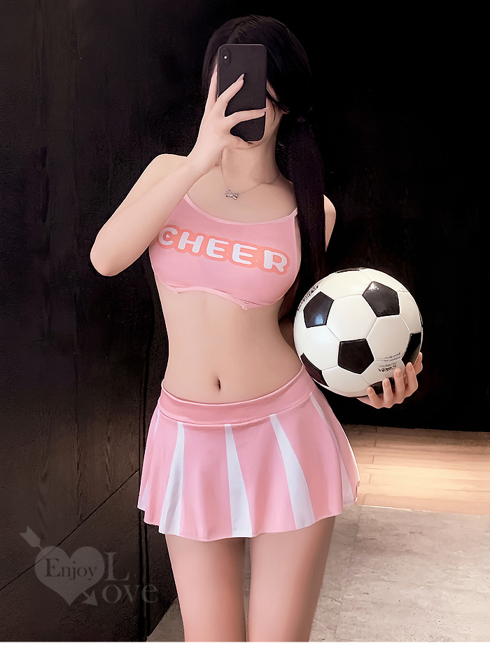 ►您現在的位置:首頁>啦啦隊足球寶貝套裝|後背鏤空印花短上衣 × 撞色短裙 運動風三件組