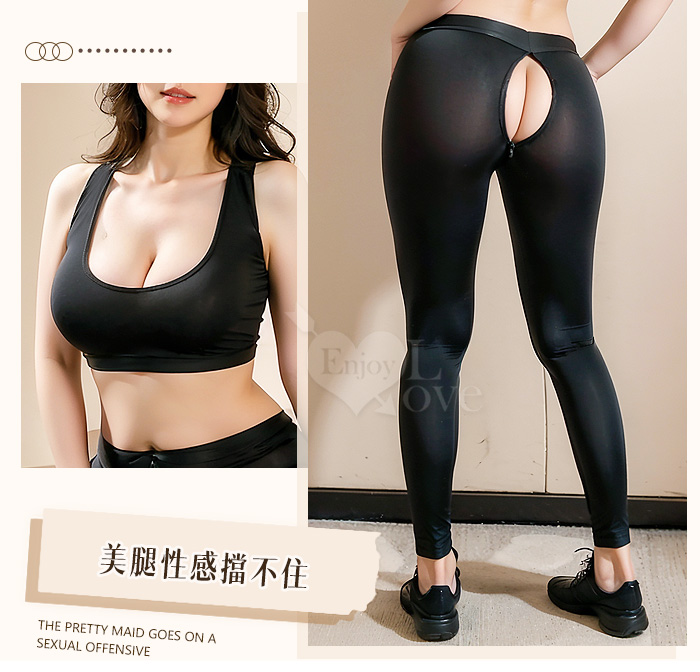 【棉花糖女孩】大尺碼情趣睡衣!冰絲順滑緊身小可愛 × 雙頭拉鍊免脫瑜珈褲|機能二件組﹝灰﹞