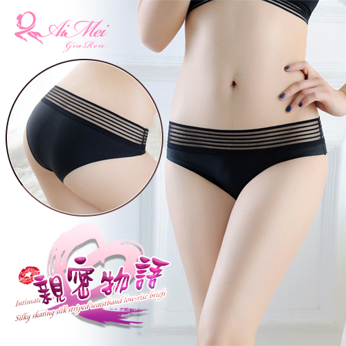| 親密物語!絲滑冰絲條紋褲頭低腰三角褲﹝黑﹞