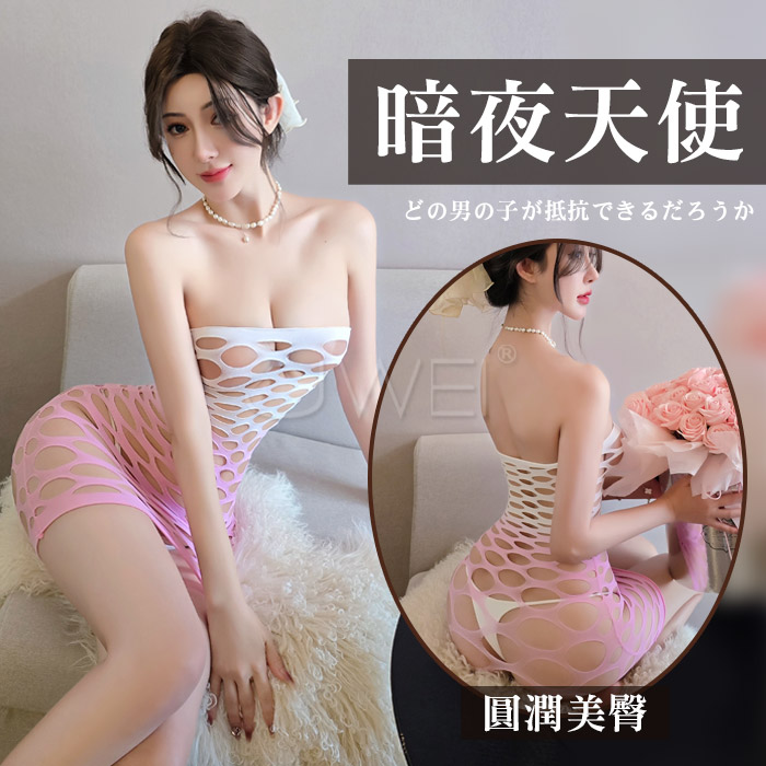 ►您現在的位置:首頁>纏綿情網.性感削肩胸口挖空網眼透膚連身網衣