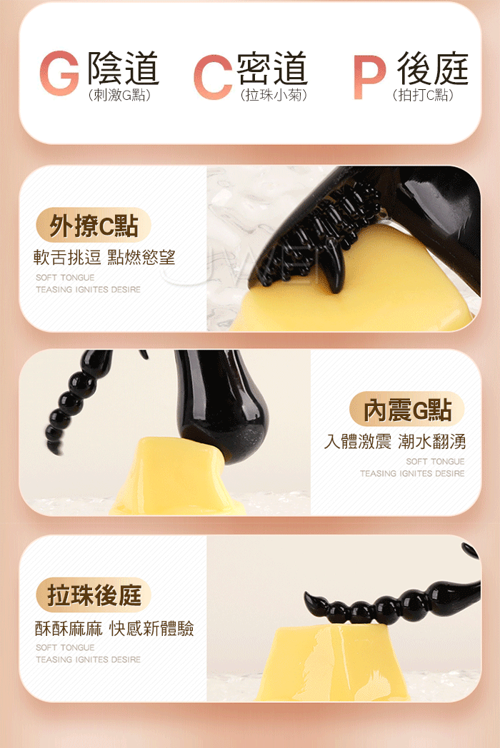 | 欲逗.10段變頻強震 三洞齊攻拉珠毒龍舌舔撩撥後庭按摩器【黑色遙控款】