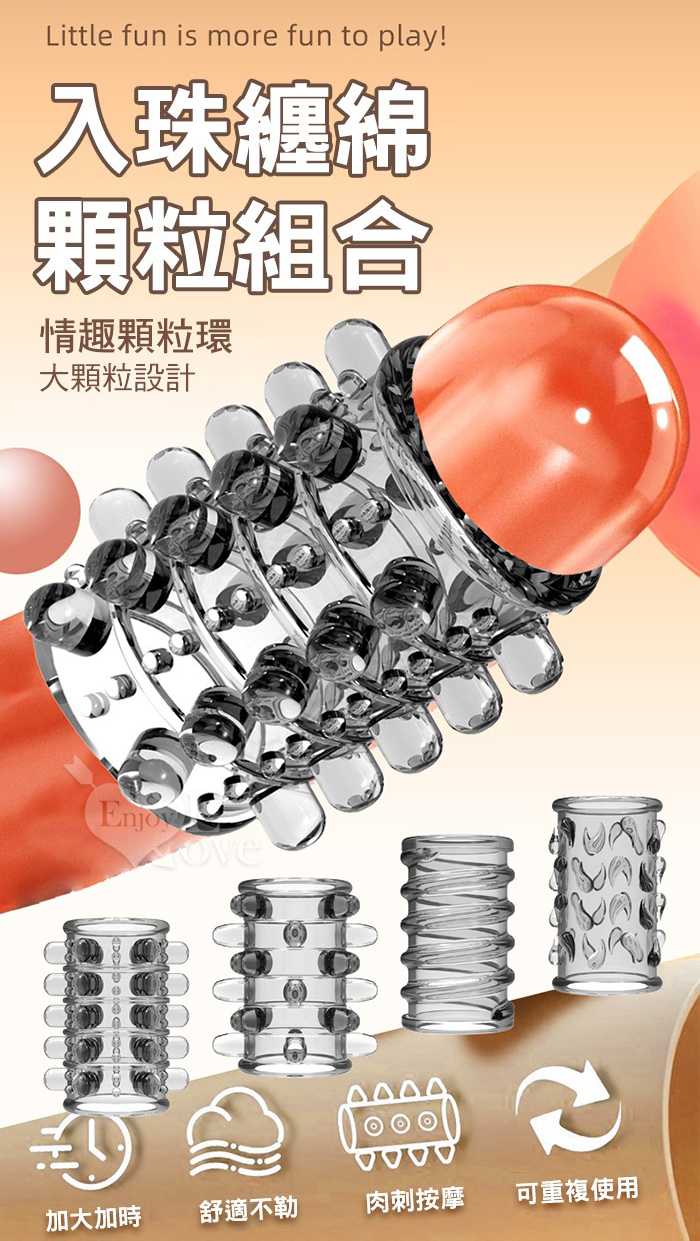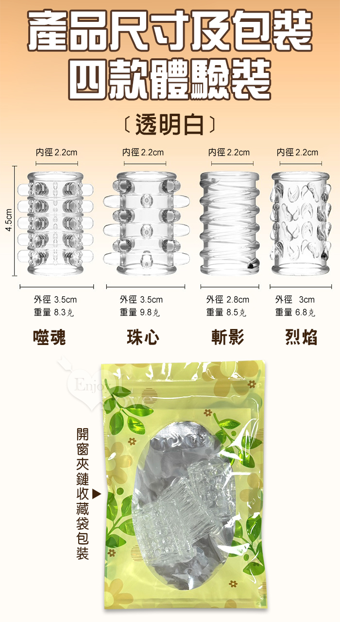 | 好戰4潮套.入珠纏綿顆粒組合~鎧甲延時鎖精陰莖加強環~成人性趣輔助用品-4款體驗裝﹝透明白﹞