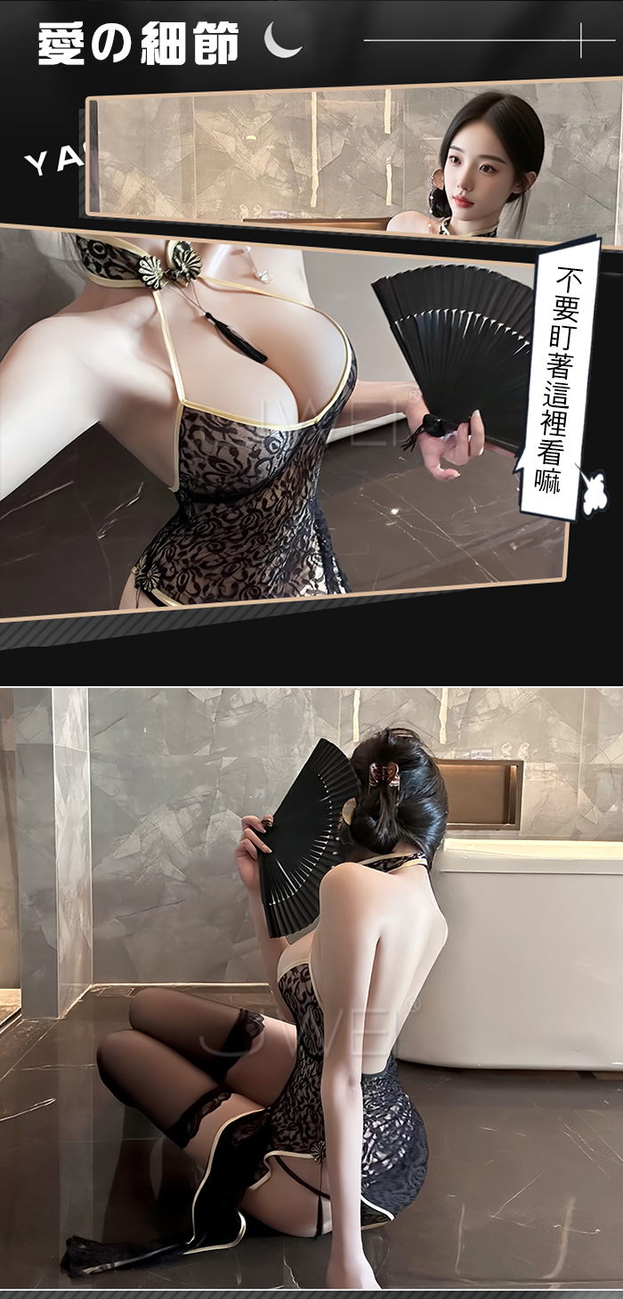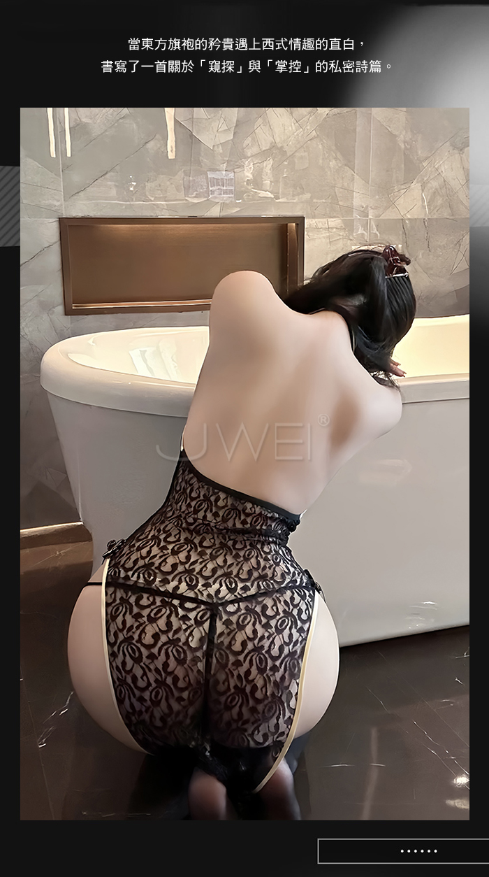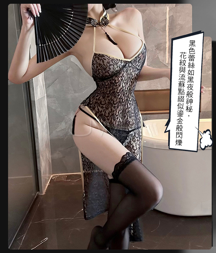 首頁>墨染鎏金.性感純欲蕾絲花紋低胸開衩美背旗袍【旗袍+T褲】