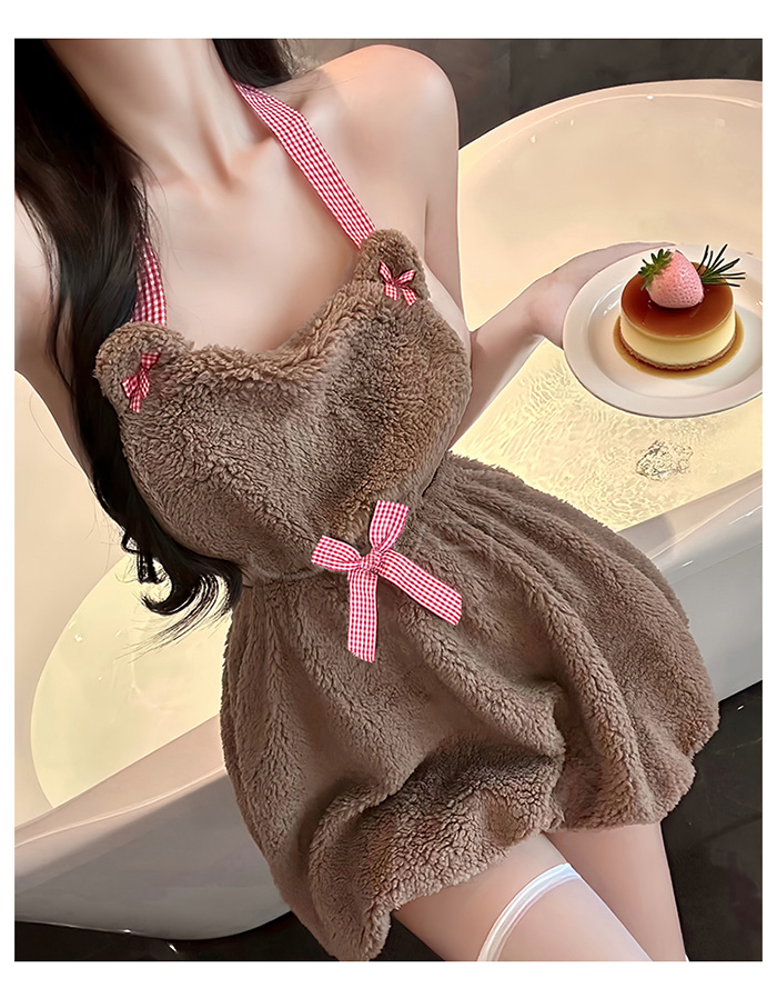 ►您現在的位置:首頁>小熊女僕.呆萌酥甜蝴蝶結繫帶小熊絨毛掛脖裙