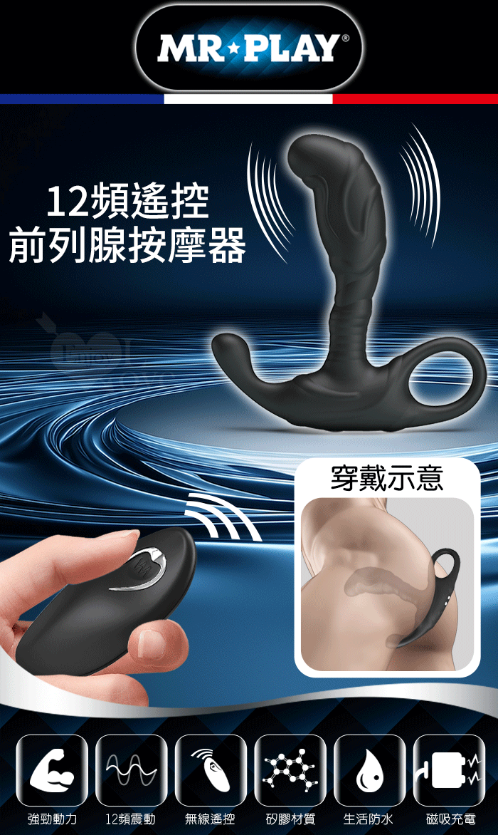 ►您現在的位置:首頁>MR‧PLAY 鋼鐵之狼 ‧ 無線遙控12頻強力震動前列腺後庭按摩器-穿戴舒適貼合/親膚矽膠/磁吸充電