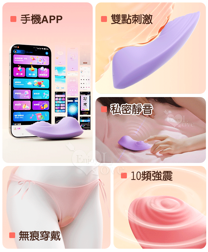 ROSELEX 小蕾逗 ‧ 10頻強震隱形穿戴按摩器﹝親膚矽膠/內褲隨搭貼身/兩種操控模式﹞可手機APP遙控 - 粉