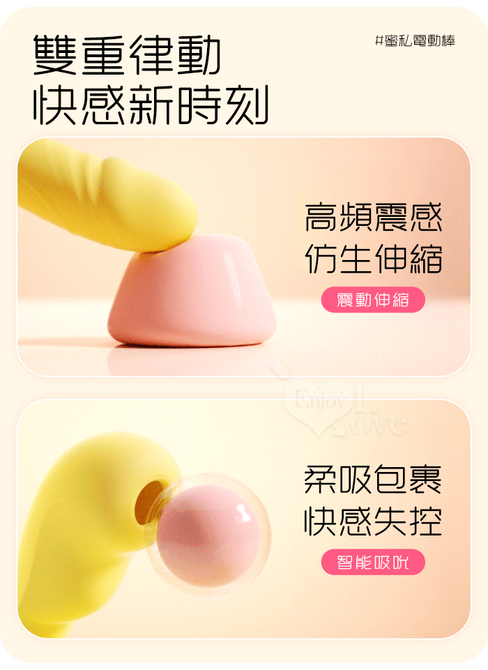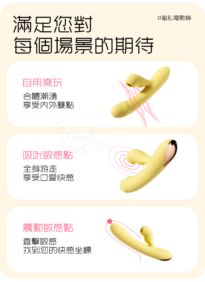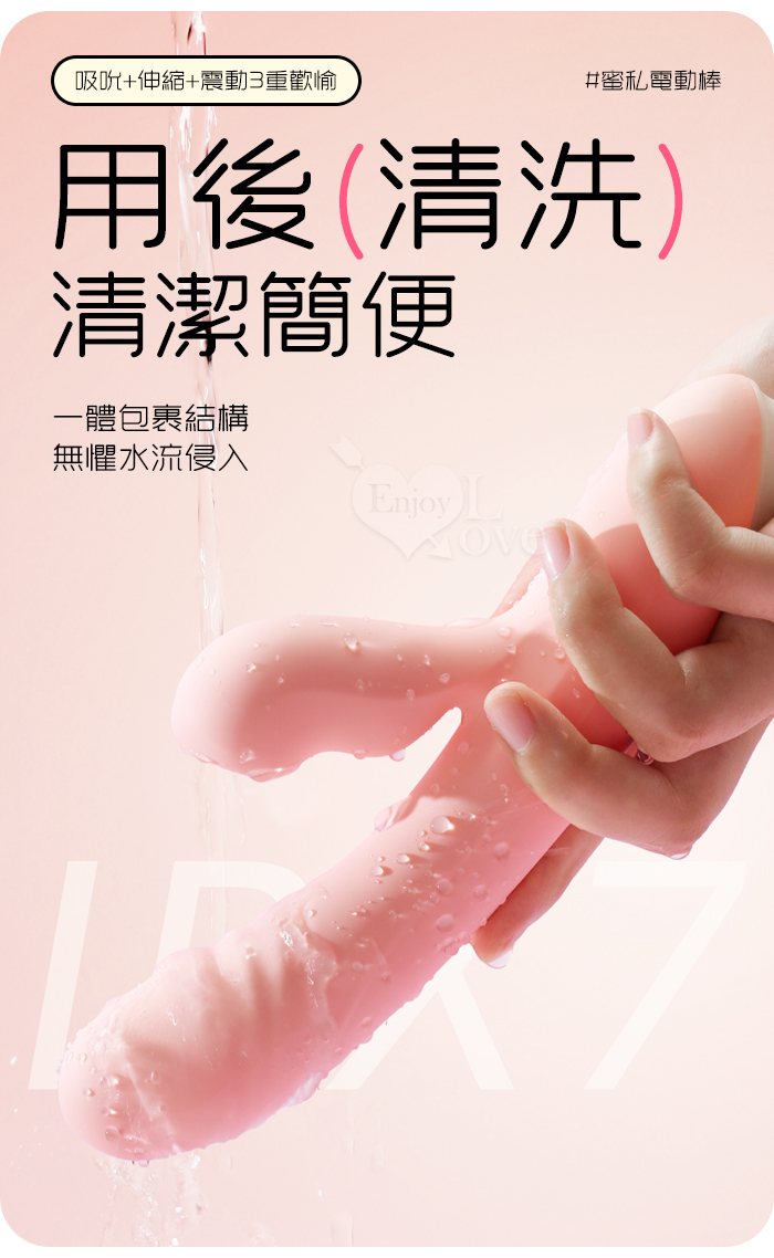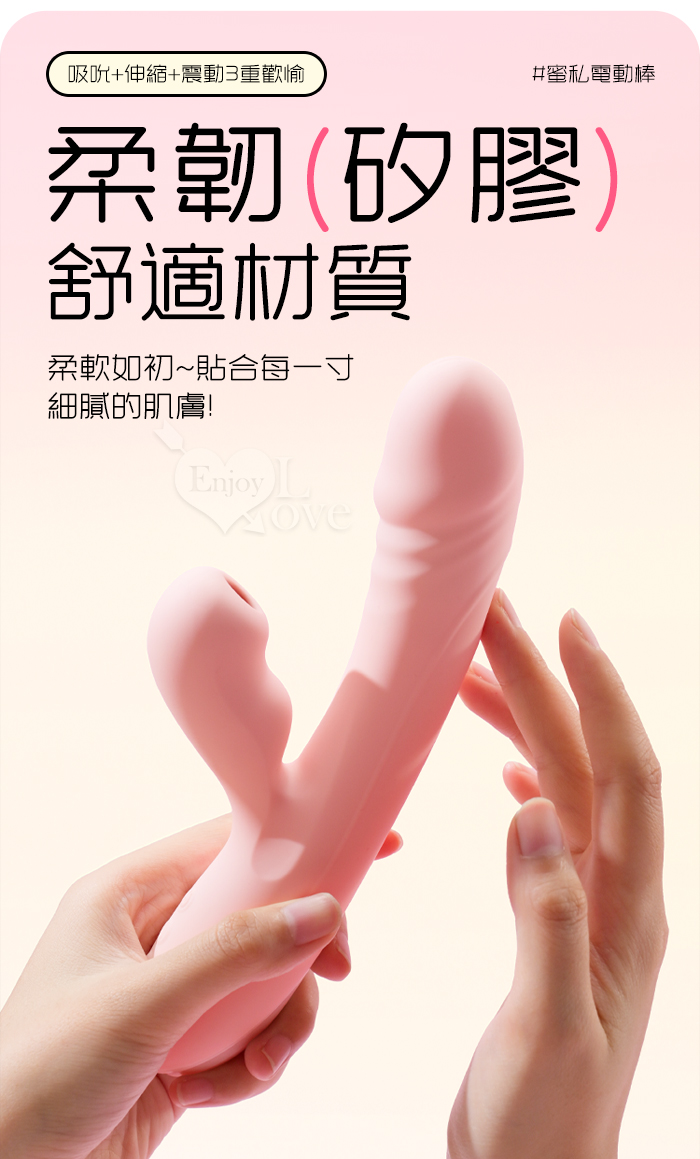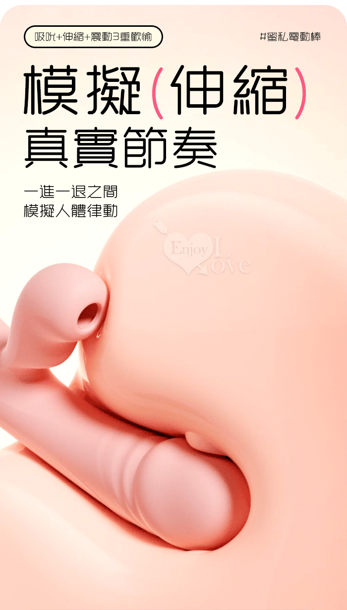 ROSELEX 蜜私 ‧ 伸⦁震⦁吸 三重爆爽多功能按摩棒﹝10頻伸縮+震動/10頻吮舔動~內外同歡~滑順親膚矽膠﹞