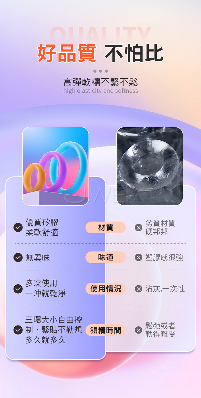 棒棒糖.繽紛糖果色系 三環久戰帶盒物理鎖精延時環【3入盒裝】