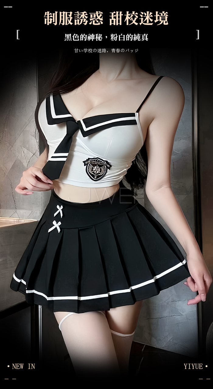 ►您現在的位置:首頁>甜校迷境.純愛撞色制式領帶白褶裙學院系cos套裝【上衣+裙子】黑色